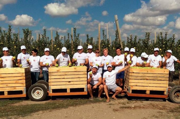 Мы все старались и собрали наш первый урожай сочных, спелых и вкусных яблок!